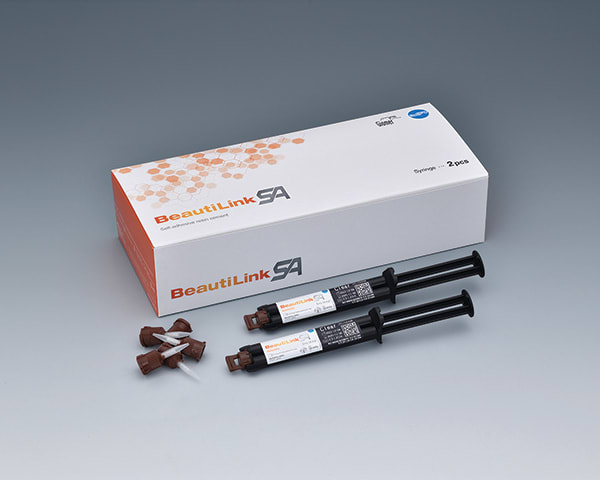 BeautiLink SA is a self-adhesive resin cement with bioactive Giomer Technology that is specifically designed for zirconia restorations. It is available in three different shades: Clear, Ivory, and Opaque. The Clear and Ivory shades are highly translucent, whereas the Opaque shade is ideal for masking stains and darker preparations. BeautiLink SA has an ideal viscosity for easy handling, it comes with mixing tips that ensure perfect delivery, and cleanup is quick and easy.