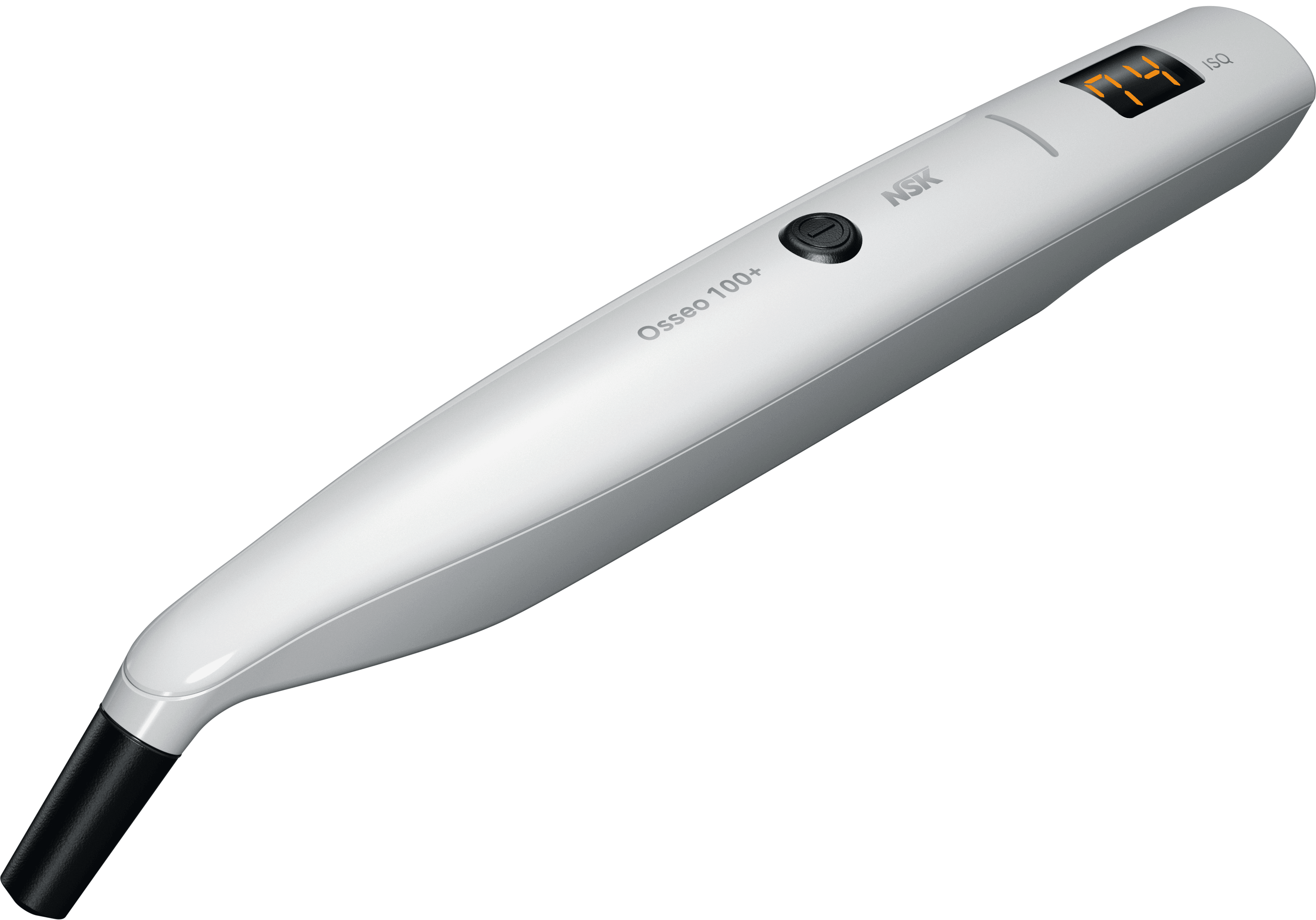 The Osseo 100+ Implant Stability Device is designed to assess the stability of implants, helping clinicians determine the right time for loading implants. This device uses the Implant Stability Quotient (ISQ) value to measure osseointegration, providing critical information for implant placement, especially in high-risk patients or those with shorter treatment times. The device pairs with NSK’s Surgic Pro2 via Bluetooth® for seamless data transfer. The ISQ value can be shared with external terminals, supporting data-driven decision-making during the implant process.