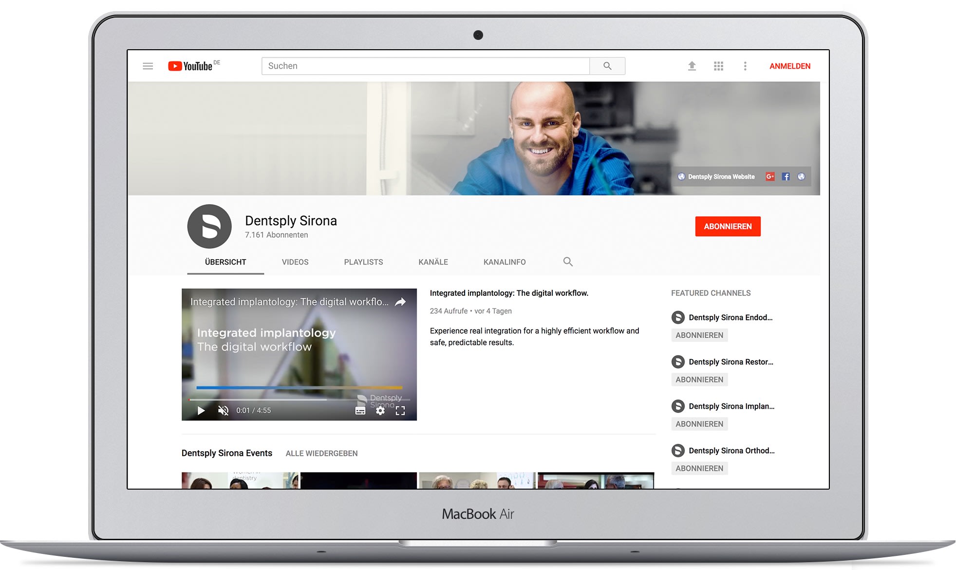 Two million YouTube clicks in just over five years are clear evidence that social media are effective in the dental market. Dentsply Sirona has a wide program on YouTube: unusual product videos, tutorials on Dentsply Sirona solutions, engaging reporting on events, and profiles of customers and employees. And viewers appreciate all this – the channel now has more than 7,000 subscribers.