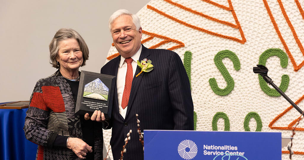 Penn Dental Medicine’s Morton Amsterdam Dean, Dr. Mark S. Wolff, was recognized by Philadelphia-based Nationalities Service Center (NSC) for the School’s service to refugees and other vulnerable populations as one of the honorees at NSC’s annual benefit, Global Tastes: The Centennial Edition. The event and award presentation was held March 24 at the University City Science Center.