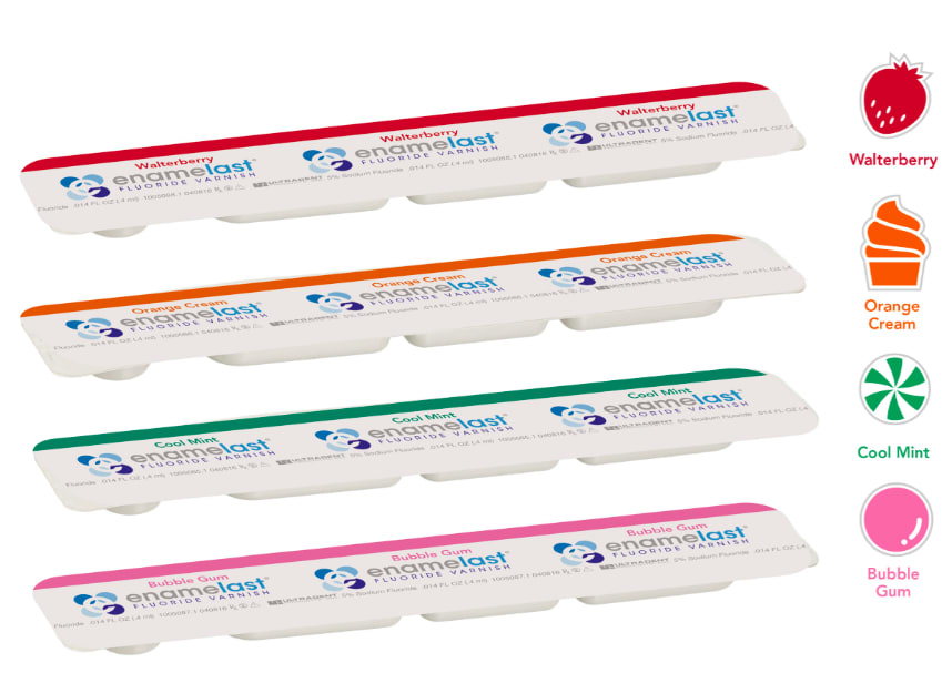 SOUTH JORDAN, Utah, July 7, 2016 –Ultradent Products, Inc. is excited to introduce three new delicious flavor offerings to its Enamelast fluoride varnish line: Cool Mint, Bubble Gum, and Orange Cream. The fluoride varnish is also available in the original Walterberry flavor.
