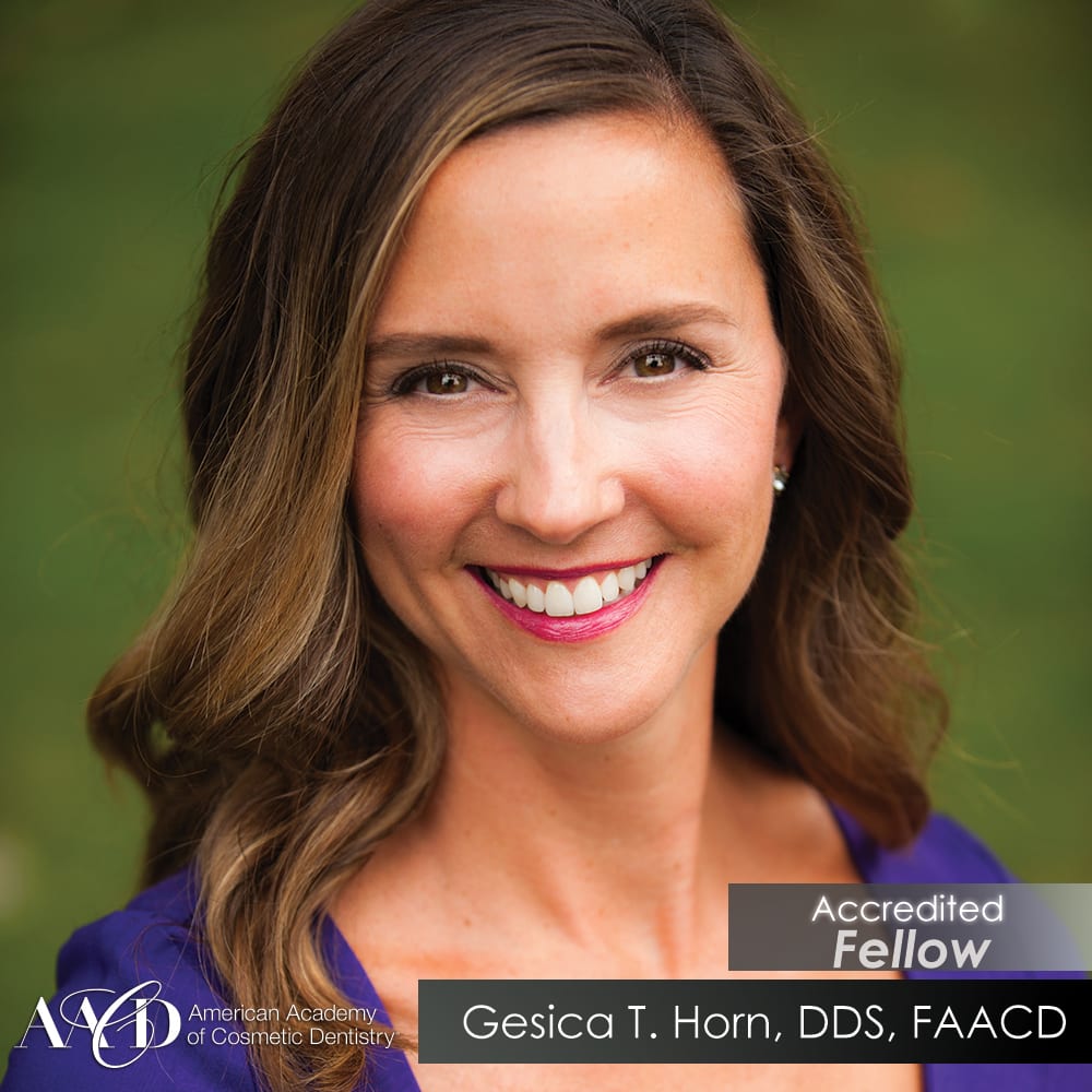 (12/20/19)— Gesica Horn, DDS, FAACD, has just been named the 86th Accredited Fellow of the American Academy of Cosmetic Dentistry (AACD). The purpose of Fellowship is to recognize the highest level of achievement for members in accordance with the AACD's mission of education and excellence.