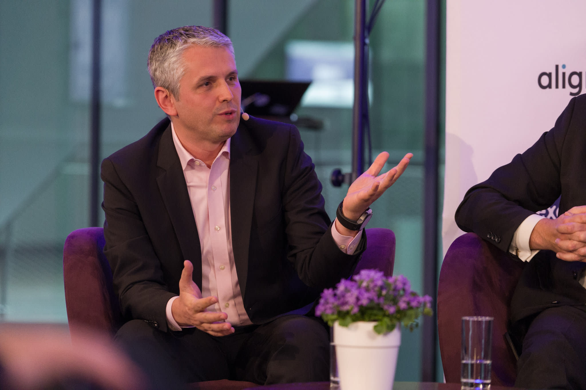 Tillmann Steinbrecher (l), exocad CEO, sees Align Technology as the ideal partner with which to grow successfully as part of the global dental company, with Vianne Battle, Senior Director EMEA, Align Technology (r). Both see great potential for a successful future with the merger.