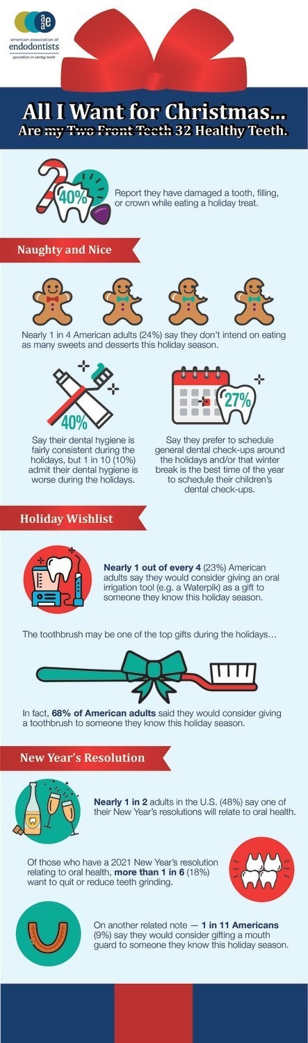 The AAE is available to speak more on the survey findings and on what constitutes a dental emergency, as well offer some additional helpful tips around how to keep your oral health up during the holidays – especially during this challenging era of COVID-19.