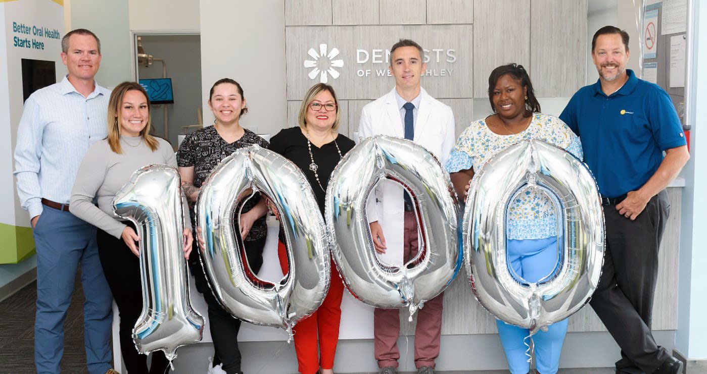 Pictured: The team at Dentists of West Ashley celebrate their grand opening and becoming the 1,000th practice supported by PDS Health.